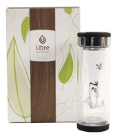 Avoid potentially harmful plastics: the Libre glass ’n glass tea transporter is beautifully crafted with double glass walls to keep tea at optimal temperature. The removable stainless steel filter lets you put loose-leaf tea directly in the glass, to enjoy teatime anytime. libretea.com |