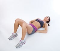 Muscles worked: rectus abdominis Begin with your feet and back on the floor; place your hands under your low back (to increase the strength of your back).