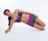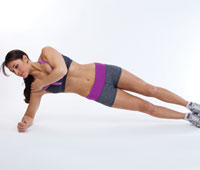 Muscles worked: obliques and quadratus lumborum Lying on your side, keep your knees on the floor and place your elbow on the ground under your shoulder.