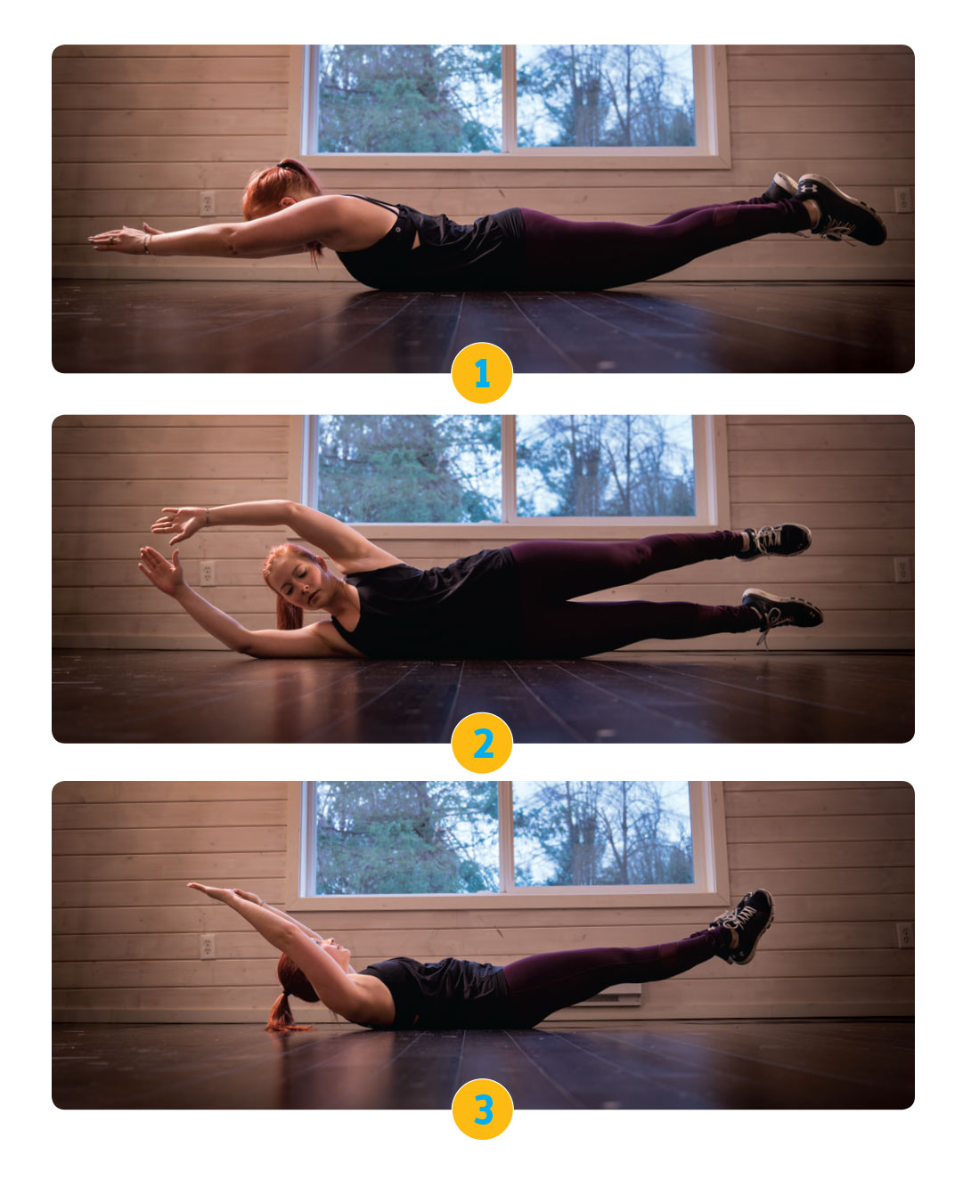 - While opening your body to your left side, pick up your left hand and left foot off the ground.