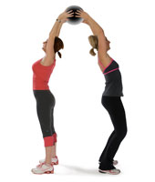 the spine. - Pass the medicine ball overhead to your partner, with straight arms, by extending the spine inward to reach behind you.