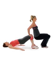 Turbo-charge: To increase the intensity of this exercise, as each of you lifts your arm up off the floor, lift up the opposite leg, too.