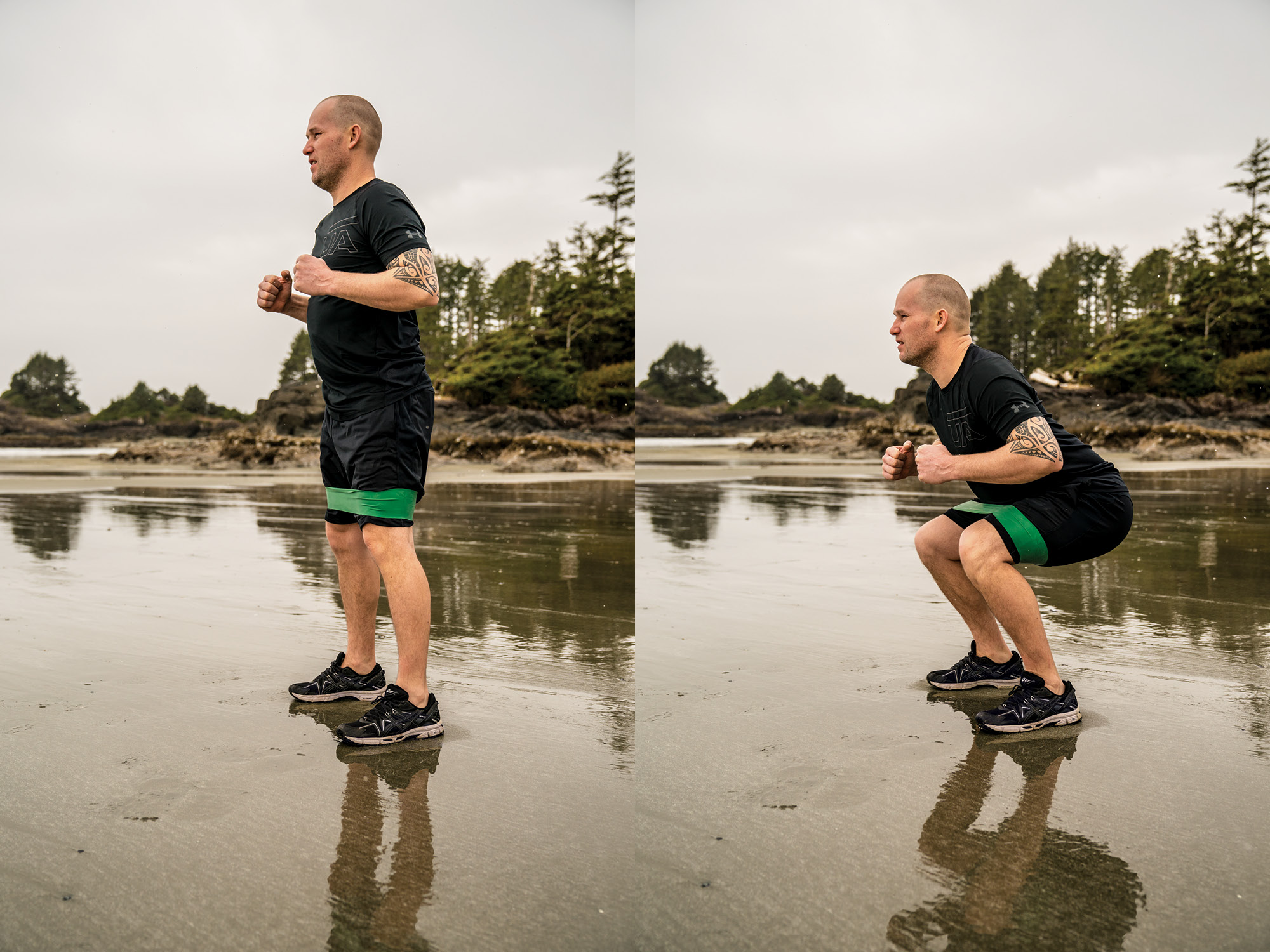 All you need is your favourite green space (such as a forest trail) and a small resistance band loop. Complete this workout as a circuit. Once you’ve gone through all five moves, start back at the top.