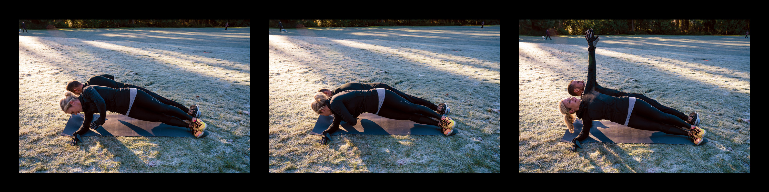 Muscles targeted: obliques, core, shoulders, back (2 sets of 10 repetitions per side)