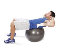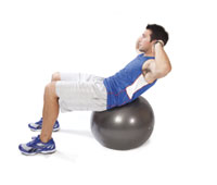 Crunches Perform on a ball, a BOSU, or the ground. Use your abdominals to curl up and slowly roll back down. Keep hands light behind the ears. |