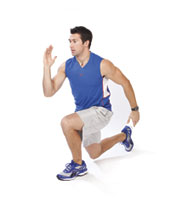 Quick lunge crossovers Start in a split lunge position, with staggered stance and neutral spine. Drop down into a lunge, and as you come up, propel yourself up in the air, changing lead legs. Land firmly and perform again with the leg that was behind you and is now in front. Lunge as low and as fast as you can. |