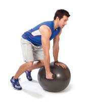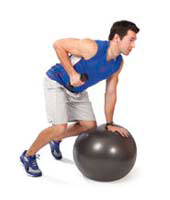 One-arm row Lean forward on a weight bench or ball, keeping the back level with the ground and supporting yourself with your nonworking hand and one knee. Start with the working arm straight down and pull the dumbbell up, with your elbow brushing by your side. |
