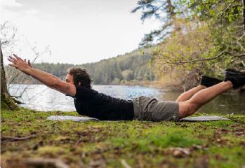 Start in the same sunny position, but this time extend your arms out in front of you (yes, like Superman flying) and point your toes back behind you. Do the same arching motion, but this time slowly, smoothly, and with a little pause at the top.