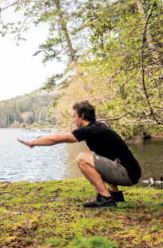 Much the same as when you load into your squat jump, ensure your heels stay down and your knees track over your toes. To get added depth to your squat, let your arms drift out in front of you for counterbalance.