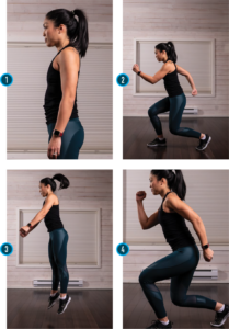 - Jump straight up, switch legs mid air, and land again softly in a lunge with the opposite leg forward.