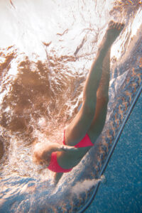 Water fitness offers other benefits too. The resistance offered by the water during basic movements fosters strength and balanced core stability, while the force and energy needed to move through the water helps muscle and bone strength along with cardiovascular and muscular endurance.