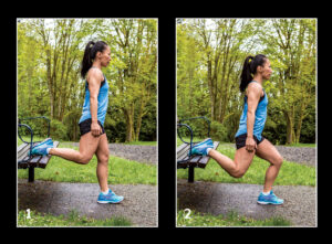 Target: To negotiate challenging terrain, you need balance and muscle strength. Bench lunges are perfect for working both.