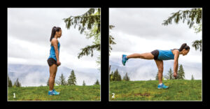Target: This exercise is the most hiking-specific exercise you can do. It trains the muscles of the lower body, with emphasis on the glutes and your balance.