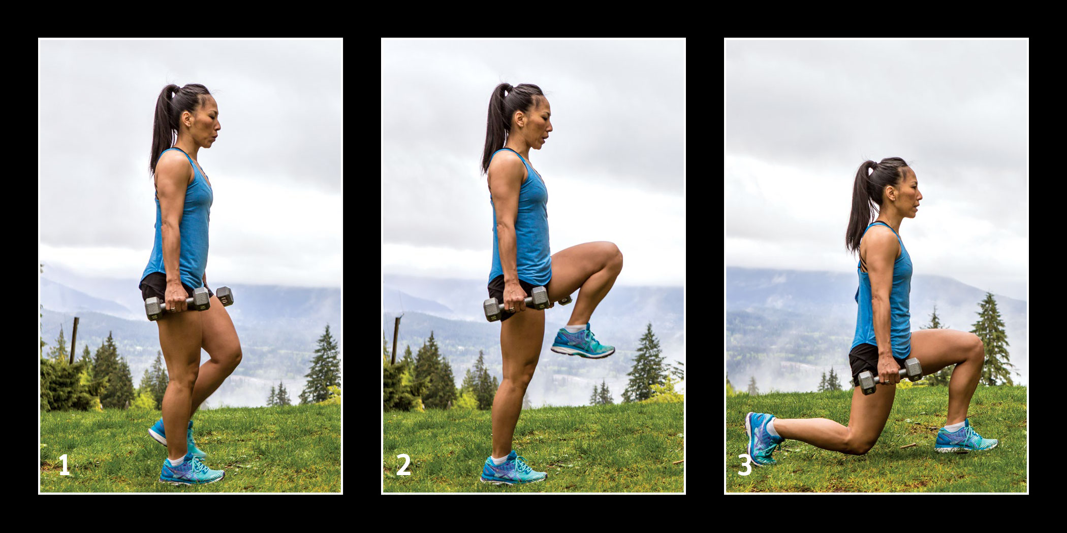 Target: To negotiate challenging terrain, you need balance and muscle strength. Bench lunges are perfect for working both.
