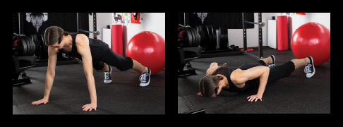 - Maintain this plank position as you lower yourself and bring your nose within an inch of the ground. Press back up into the start position.