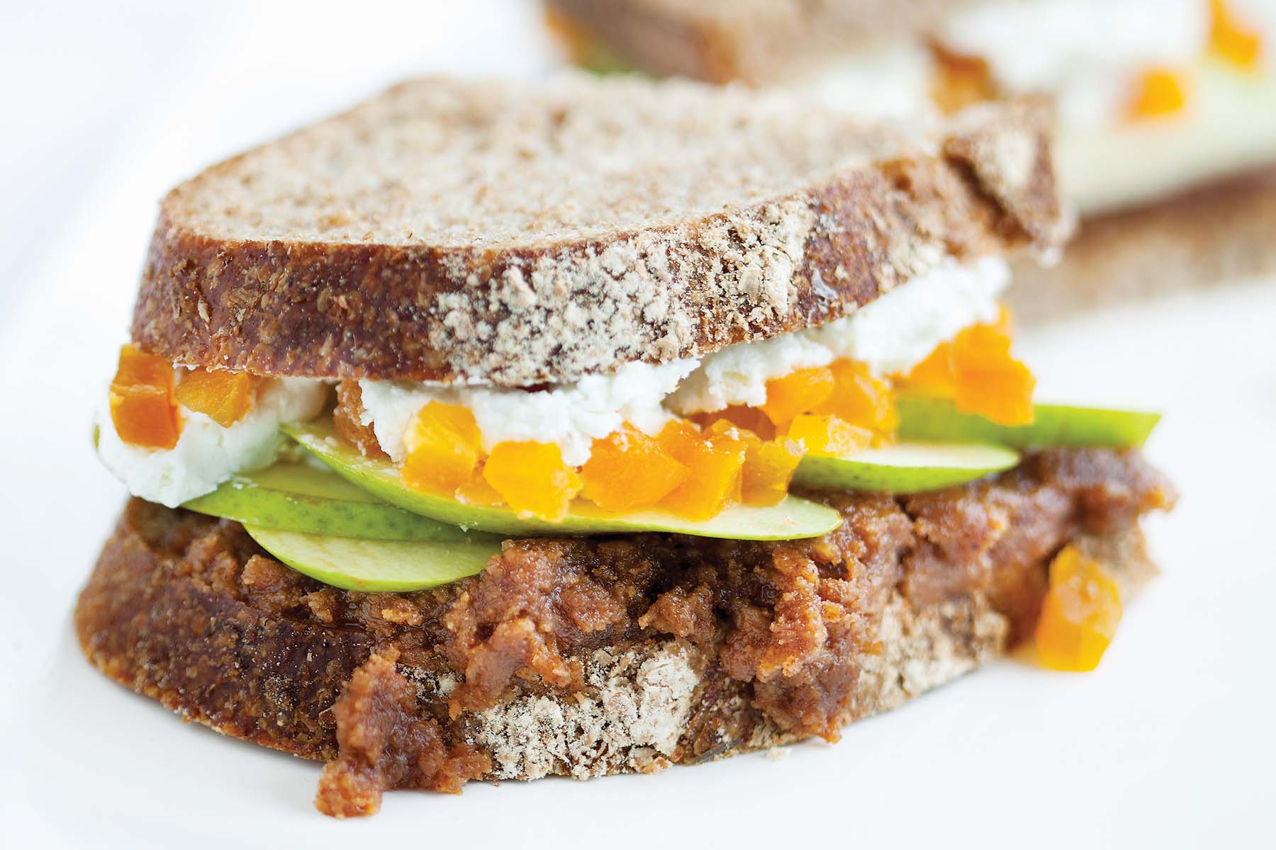This almond pear sandwich is the best thing between two slices of bread. Experience fresh flavors of pear and apricot, the richness of goat cheese, and hints of vanilla and cinnamon—all in one bite!