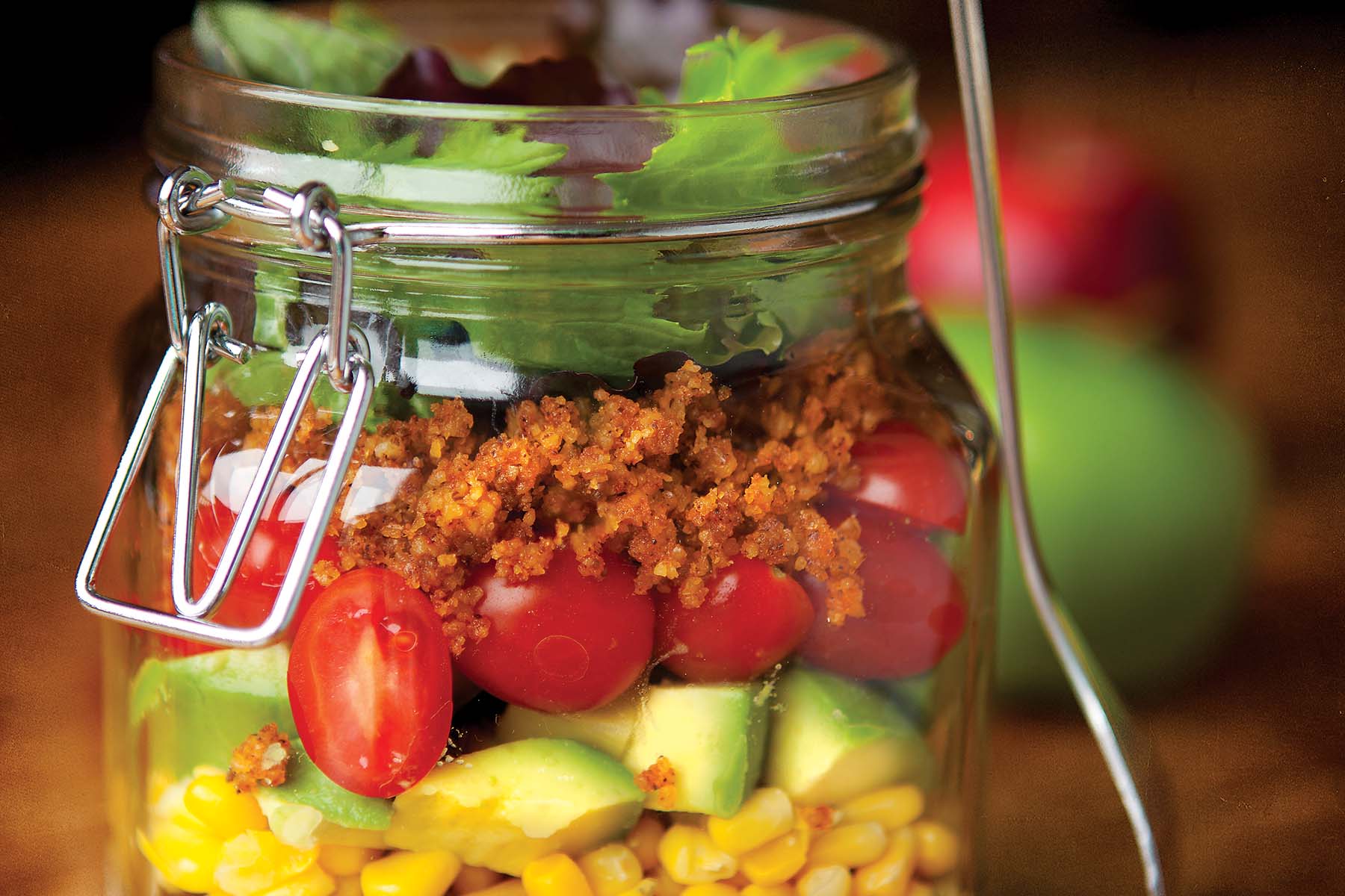 Tacos aren’t just for Tuesday! This amped-up mason jar salad is perfect for any day of the week—say, Meatless Monday? Layer the ingredients starting with dressing on the bottom, and the driest ingredients on top, to keep your salad from getting soggy and save on dishes.