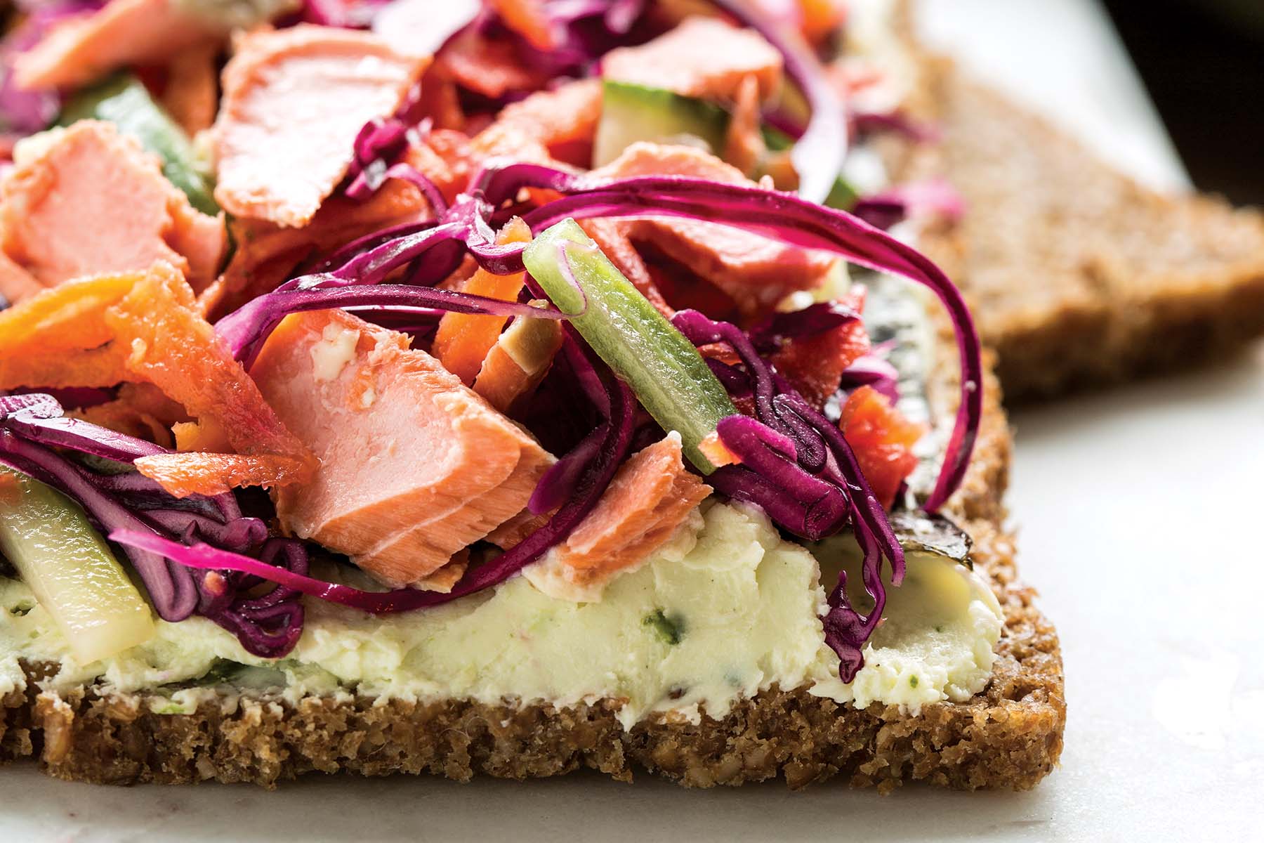 This deconstructed sushi roll of a sandwich is just the ticket to clean out stuffy sinuses thanks to the wasabi-infused cream cheese. And don’t be afraid to get creative with your ingredients—this is your chance to easily recreate your favorite sushi roll … minus the roll.