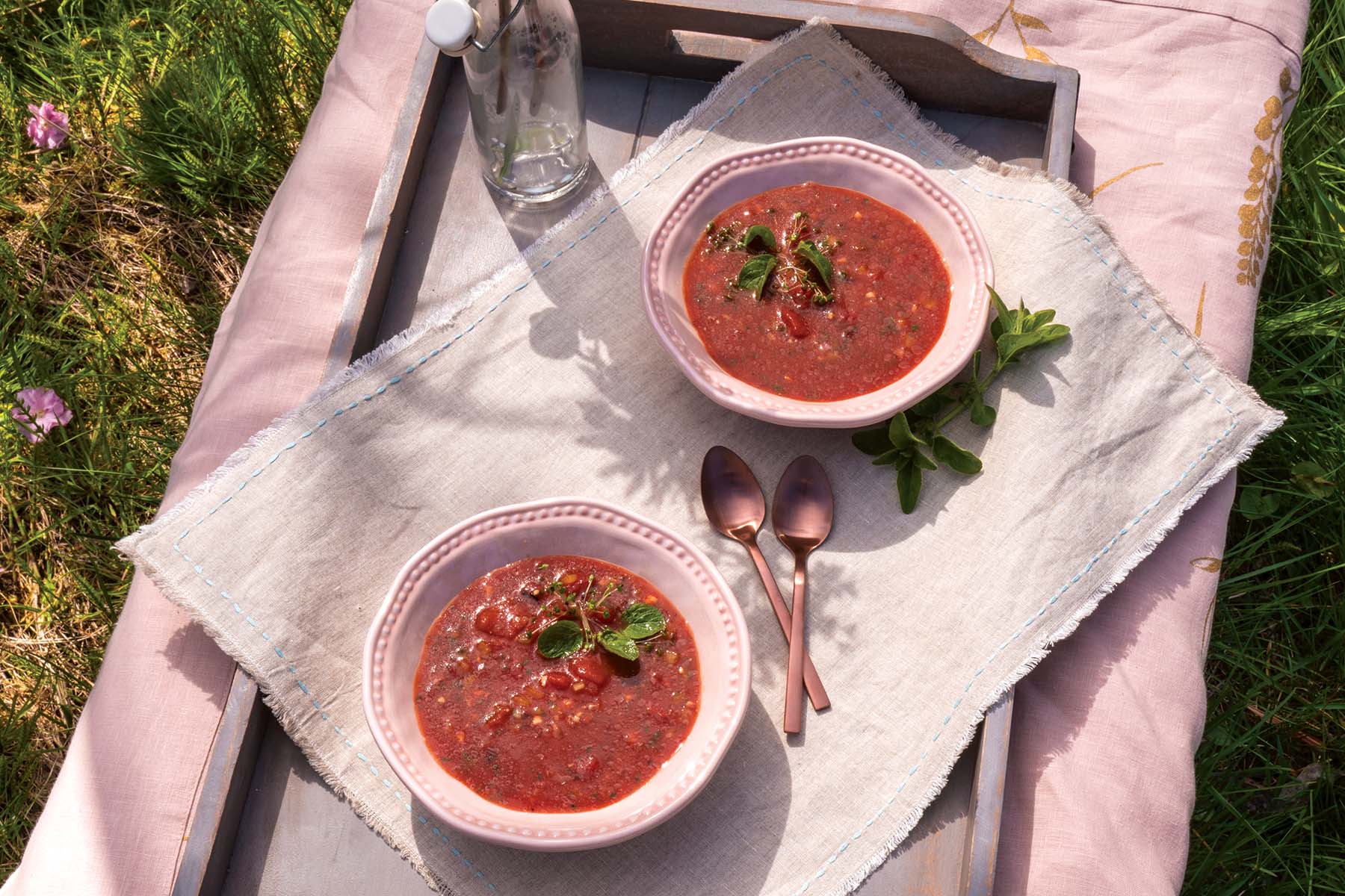 Take comfort in knowing this cold soup is waiting for you come lunch time. Fire-roasted tomatoes, fresh lemon juice, and aged balsamic vinegar are just a few of the ingredients that really set it off.