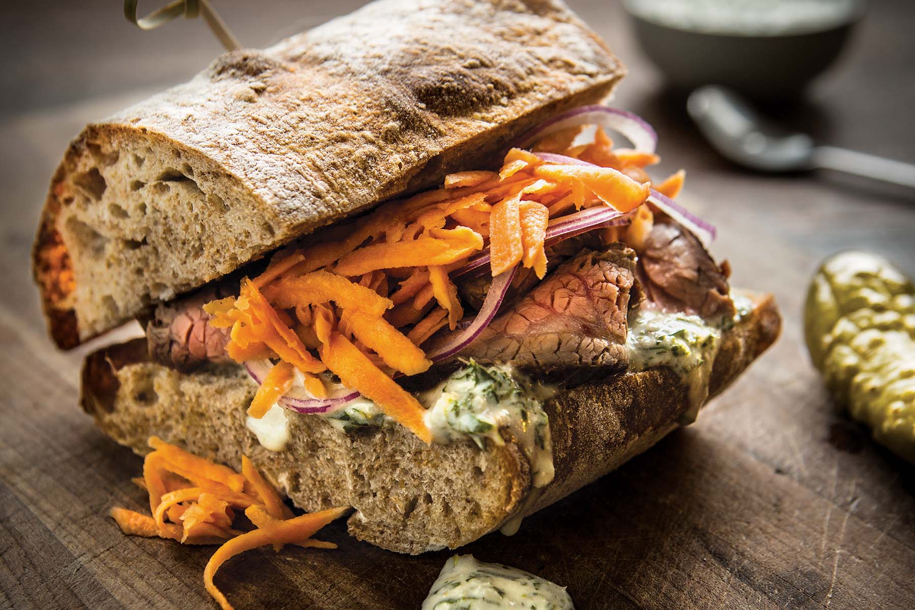 Steak and chimichurri do the tango in this Argentinian-inspired sandwich. With guest appearances from sweet potato and horseradish, it’s as good as it is good for you.