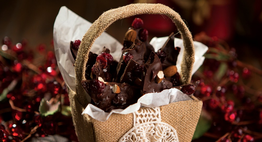 Who doesn’t love chocolate mixed with delicious things like nuts and dried fruit? If planning to give this easy bark as a gift, you can make it one week ahead of time and keep chilled.