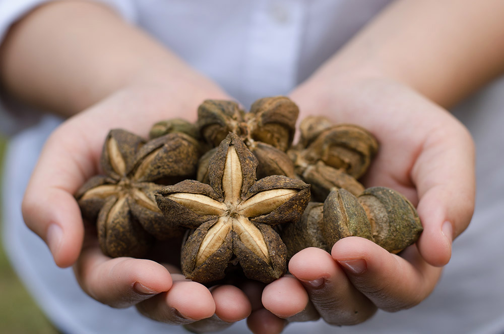 Sacha inchi seeds’ mother plant (Plukenetia volubilis) is recognizable by its four-to seven-pointed star-shaped fruit, which contains the cherished seeds. While the fruit itself is inedible, the encapsulated seeds, when roasted and shelled, are a tasty snack.