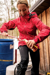 The sap is heated over a wood fire and watched closely until the syrup production is complete. Requiring 40 gallons of sap to produce just one gallon of maple syrup, not one drop of this precious water can be wasted, and each member of the family has a deep respect for this fact.