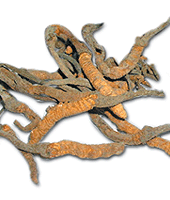 Known also as “winter worm, summer grass” (dong chong xia cao), cordyceps is naturally found in the highlands of China, Tibet and Nepal above 10,000 feet. In early spring, people crawl on the ground to search for the small mushroom. It is literally a fungus that grows on the bat-moth caterpillar. Since it is very rare and expensive, Chinese scientists have found a way to cultivate it. The cultivated version is made from dried mycelia powder, usually grown on organic grain, so there are no animal byproducts in it.