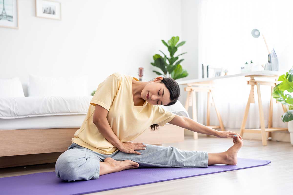 - Stretching: put on your fuzziest socks and do a few stretches to relieve cramps.