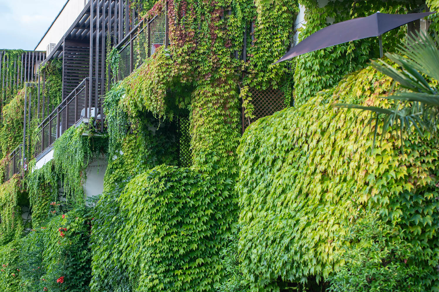 In addition to soaking up air pollution, planted walls help absorb sound and offer a solution to an echoey room or insulation from a noisy neighbor. Depending on their size, plant leaves can absorb up to 60 percent of the incident sound energy, making planted walls an excellent option to help improve the acoustics of indoor and outdoor living spaces.