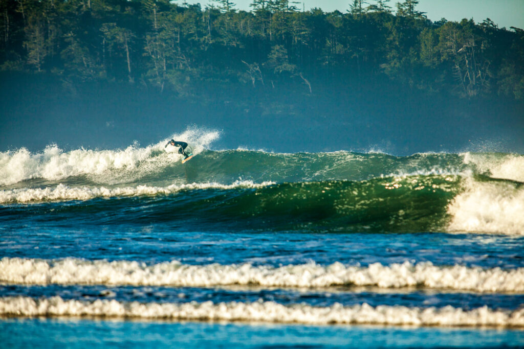 The next morning, there’s a dewy smell of rain in the air. That’s typically bad news back home, but not during Tofino’s storm season! From November through February, people flock to the area to watch storms turn the sky into a swirling Vincent van Gogh painting while massive 6 m (20 ft) swells pound the beaches.