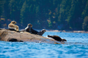 We glimpse a mother bear and her cubs on the beach and a pack of wolves running through the forest. Our palms get a little sweaty and our pulse quickens. We’re grateful we’re observing it all from the safety of the water, far from the animals.