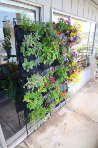 Whether you’re growing lettuce, kale, chives, or chard, instead of yanking out a whole plant for salads or smoothies, simply snip some leaves. Taking no more than a third of the plant at once and allowing time for regrowth before harvesting again, you can gather greens from the same plants for months on end. Meanwhile, your living wall will remain lush looking and the trimming will discourage plants from becoming leggy and going to seed.