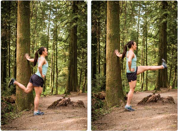 - Supporting yourself on an object, keep your posture tall and core engaged.
