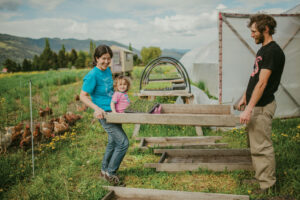 Golden Ears Farm is a third-generation family farm started in the 1940s on Secwepemc land by Henry Grube near Chase, BC. Growing strawberries, raspberries, and squash, and also a wide variety of vegetables and fruits, along with fresh eggs, the farm is presently owned by his daughter, Anne Grube, and has been operated by her son, Tristan Cavers, since 2004. Cavers runs the farm with his partner, Michelle Tsutsumi, and their toddler daughter, Avé.