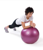 - Position your elbows on top of a stability ball and walk your legs out so that your head, your hips, and your ankles are all in line.