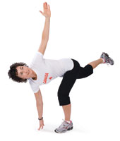 - Step forward with your right foot, keeping the leg straight. Raise the left leg behind you.