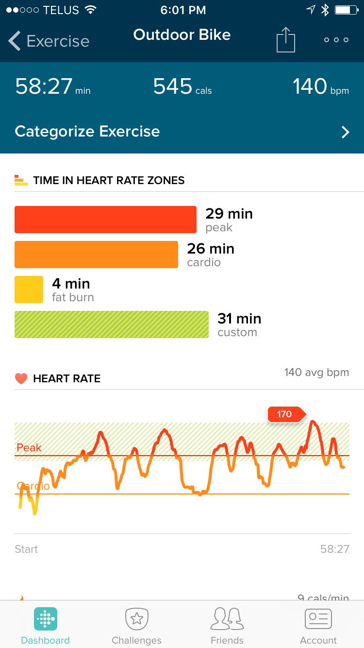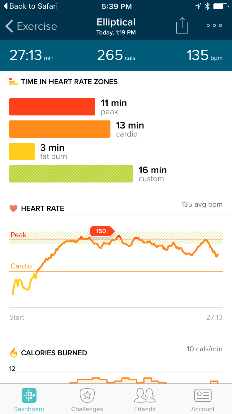 Without letting my tracker know that I was about to exercise, 15 continuous minutes on my outdoor bike or the elliptical trainer allowed the Fitbit to determine what exercise I was engaged in and automatically categorize the activity and then customize the expected calorie burn.