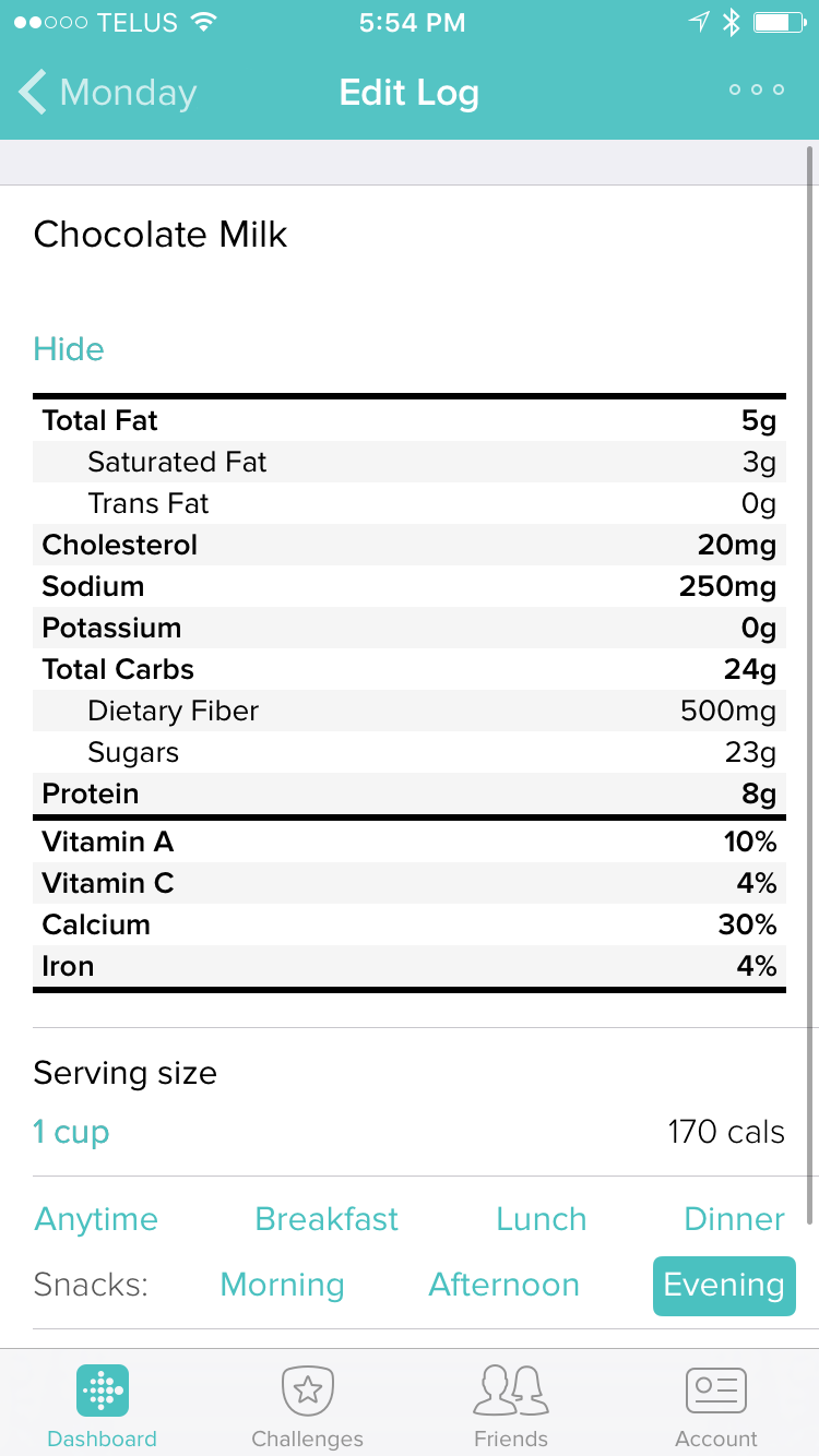 Tracking food intake is crucial (and chocolate milk is bad)
